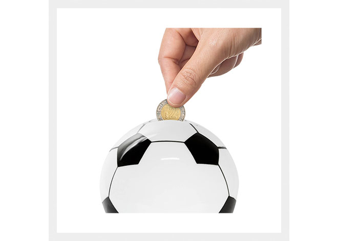Descripción: Alcancía con base en forma de balon de futbol.