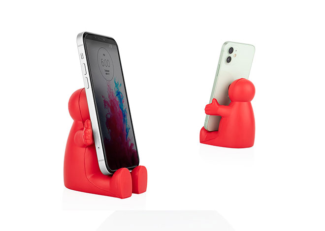 Holder para celular elaborado en PU con diseño divertido y funcional que también actúa como aliviador antiestrés. Su forma amigable y flexible permite sostener el dispositivo mientras ofrece una experiencia táctil relajante. Ideal para escritorios, combina utilidad y entretenimiento en un solo producto.