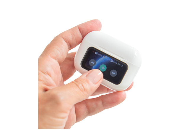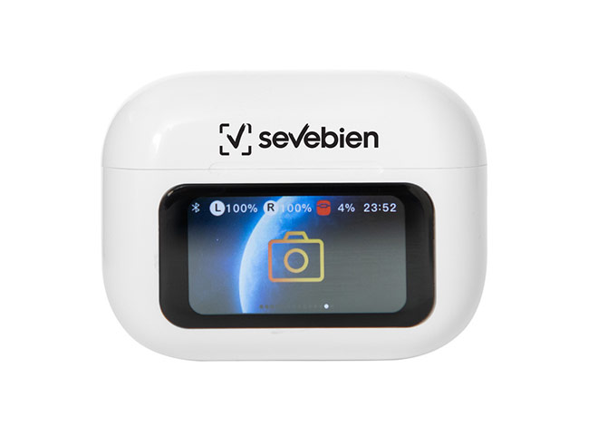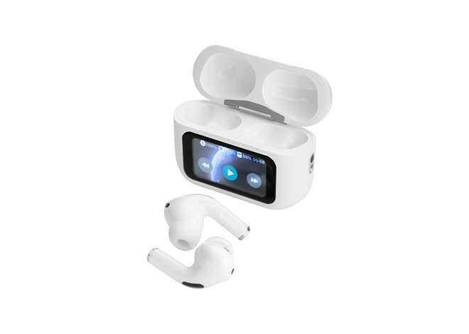 Audífonos bluetooth TWS. Estuche de carga con pantalla táctil multifunción. 14 modos de selección que incluyen disparador para selfies, cronómetro, localizador de auriculares, luz, ecualizador, volumen y cambio de canciones. Encendido automático. 2 micrófonos. Canal doble de sonido. Incluye manual y cable de carga USB-C de 20 cm. color blanco.
