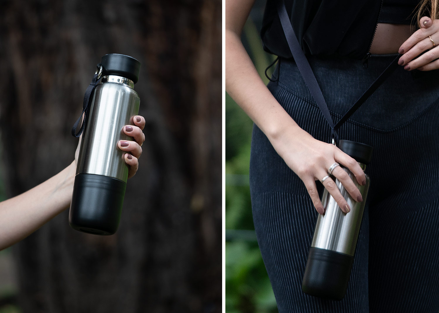 Botella Vacuum. Cuerpo de acero inoxidable de doble pared al vacío. Tapa de plástico con función de almacenamiento y cordón de 2 tamaños. Base de plástico extraíble con función de taza. Capacidad: 500 ml / 17 Oz.