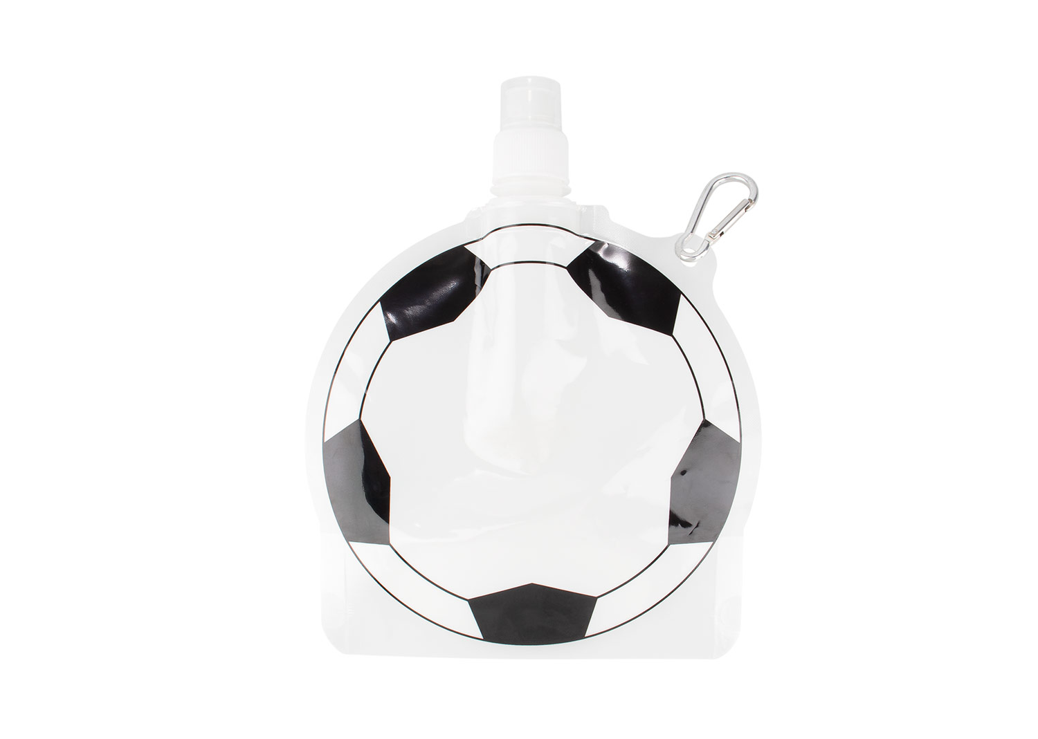 Botella plegable fabricada en PET, con impresión negra en el producto. Equipada con boquilla con tapa, tapa de cierre giratorio y gancho carabinero que facilita su transporte. Su diseño resistente y funcional la hace ideal para el uso diario en movimiento, permitiendo llevar diferentes tipos de bebidas de forma práctica y segura. Capacidad: 850 ml / 29 Oz.