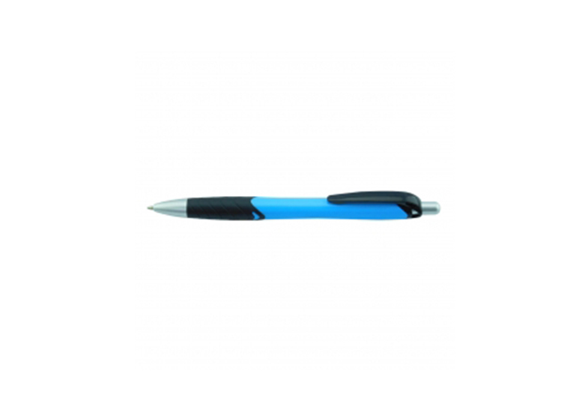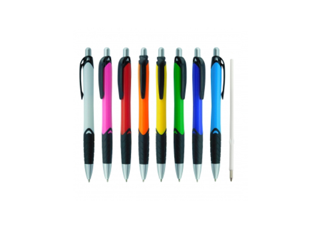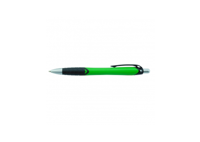 Esfero plástico, sistema retráctil y punta cromadas, clip negro, con antideslizante negro. ——————————————— MATERIAL: 14.3 cm MEDIDAS: Plástico EMPAQUE: Tamaño caja: 48*31*20 CM/ Peso: 10 KG/Unidades por caja: 1.000