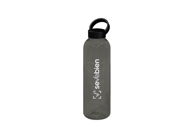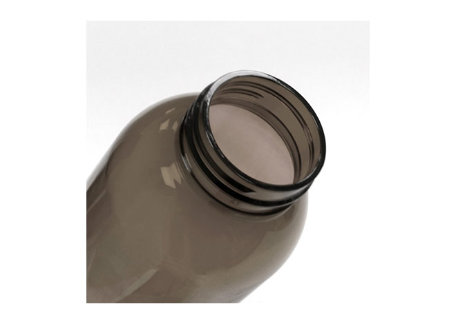 Botella de plástico color negro con tapa a rosca plástica.