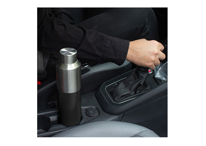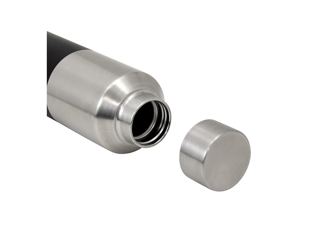 Botella doble pared, sellada al vacío. Tecnología vacuum. Interior de acero 304 y exterior de acero 201. Tapa a rosca de acero 201 con anillo de silicona. Pintura acabado mate en parte inferior. Mantiene por más de 12 hs la temperatura de las bebidas calientes y 24 hs de las bebidas frías.