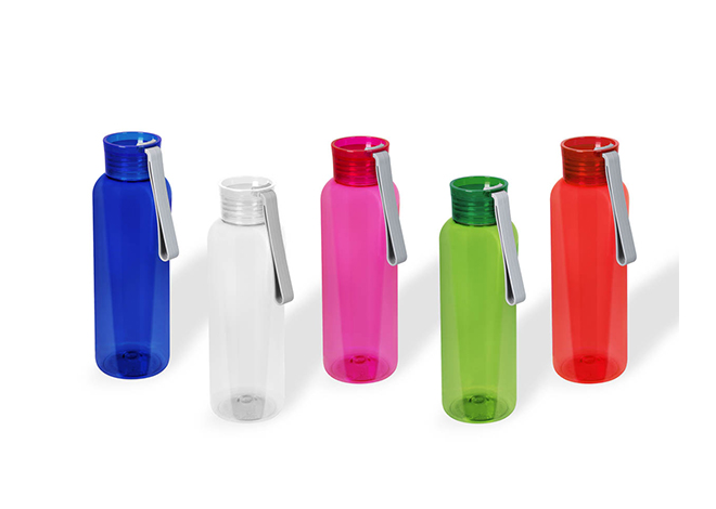 Descripción: Cilindro fabricado en RPET, material que lo hace amigable con el medio ambiente. Pared sencilla de plástico. Tapa de plástico con sistema de rosca, incluye un asa de silicón para transportarla fácilmente.