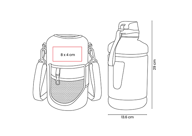 Descripción: Cilindro con pared sencilla de plástico. Incluye funda removible de neopreno. Tapa de plástico con sistema de rosca y sobretapa que agrega un clip de seguridad para evitar derrames. Su tamaño esta diseñado para quienes necesitan llevar una gran cantidad de agua de manera práctica, es perfecto para actividades intensas, largas jornadas o aventuras al aire libre, asegurando que nunca te falte agua. Los bolsillos de su funda, te permiten organizar tus artículos esenciales y no perderlos de vista mientras te ejercitas y su correa ajustable lo hace ideal para llevarlo contigo sin mayor esfuerzo.