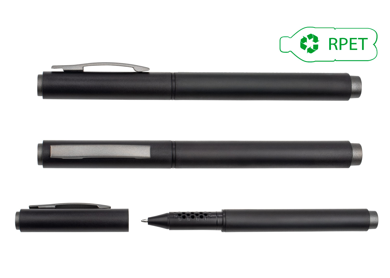 Bolígrafo con cuerpo de color sólido plástico RPET, clip metálico. Tinta de gel. Al retirar la tapa, el bolígrafo cuenta con detalles circulares. (Bolígrafo/Esfero)