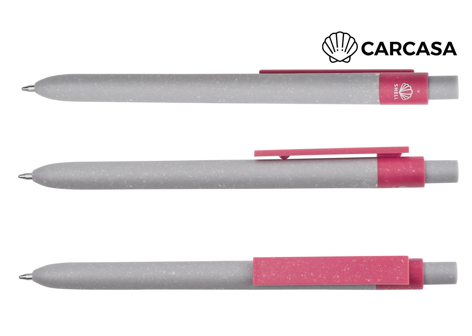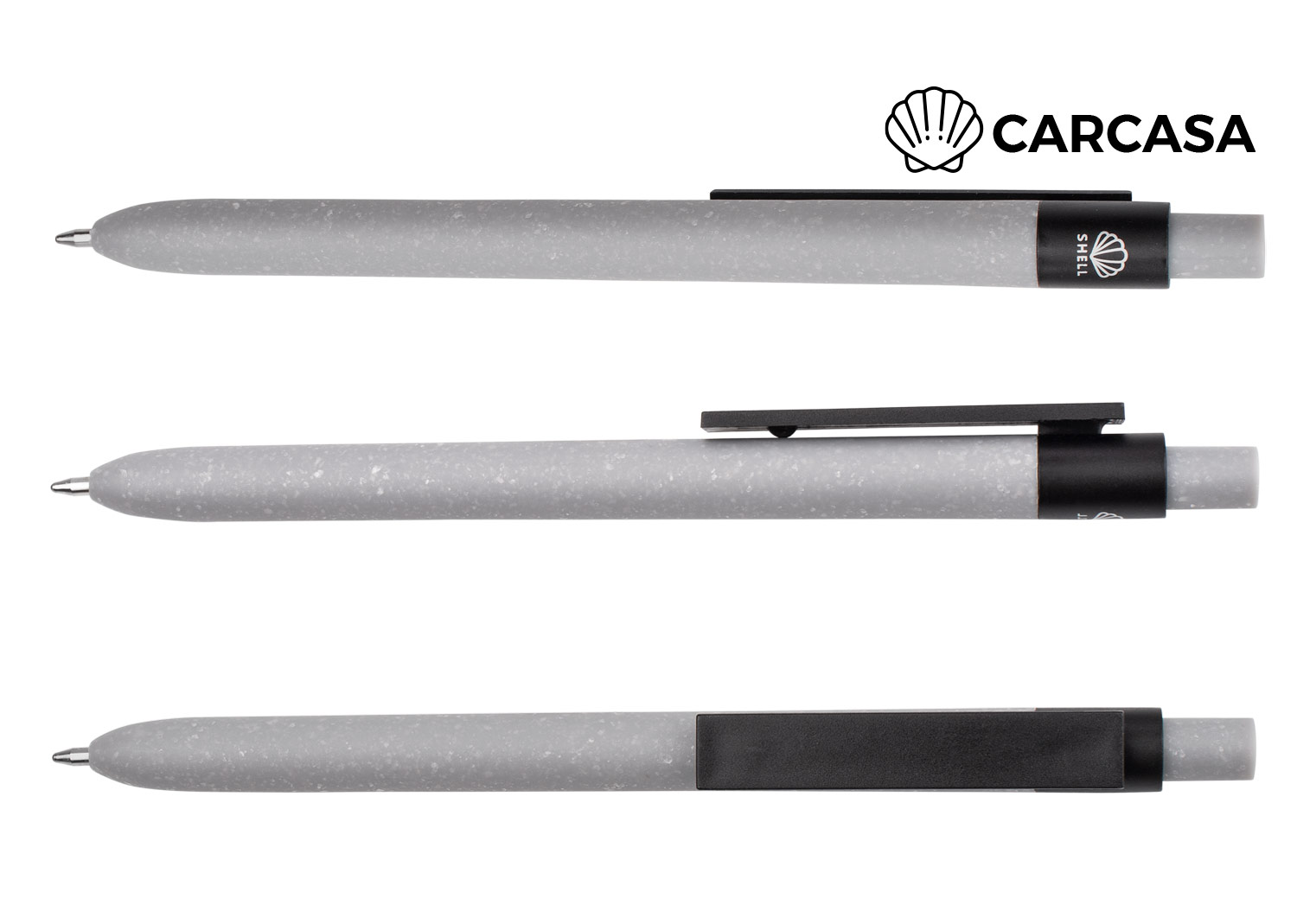 Bolígrafo de plástico con pulsador, diseño uniforme y resistente. Cuerpo, clip rectangular y botón elaborados en material de carcasa gris sólido. Incorpora recambio plástico tipo cruz para una escritura fluida y confiable. (Bolígrafo/Esfero)