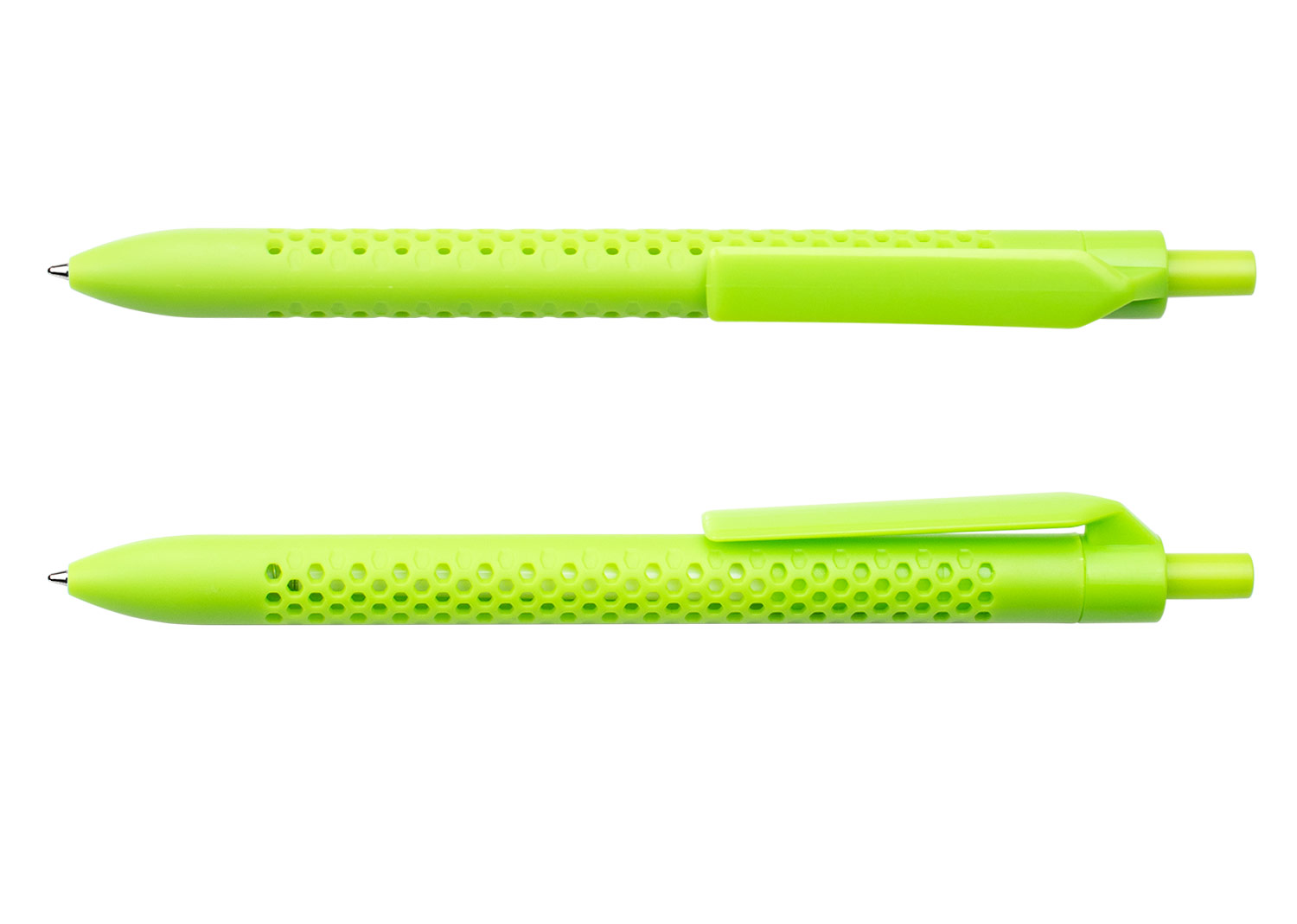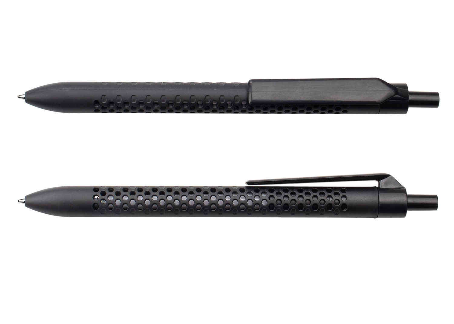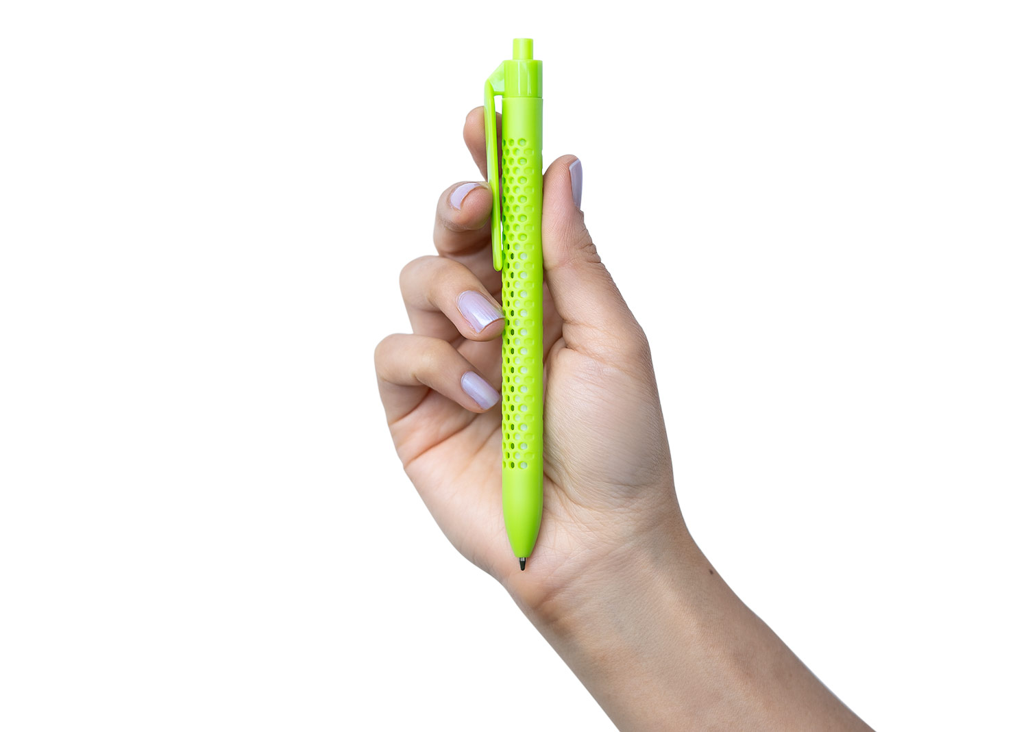 Bolígrafo retráctil con barril de color sólido y diseño perforado que aporta un estilo moderno y funcional. Cuenta con clip y botón del mismo color, lo que complementa su apariencia uniforme. Ideal para uso diario, combina comodidad de escritura con un diseño llamativo.