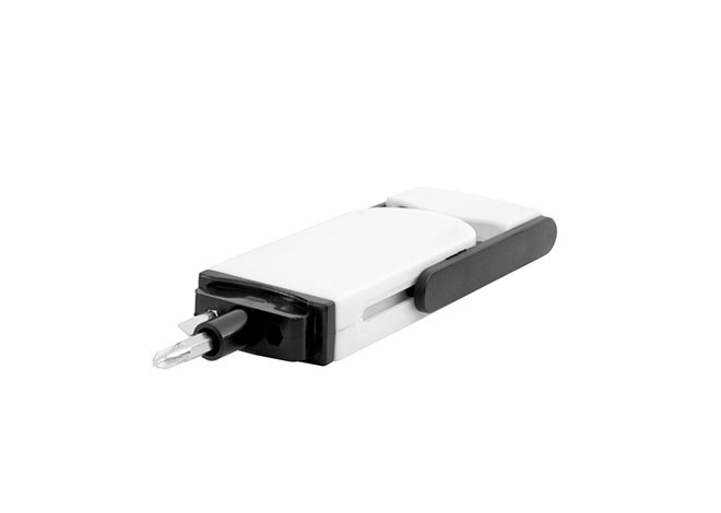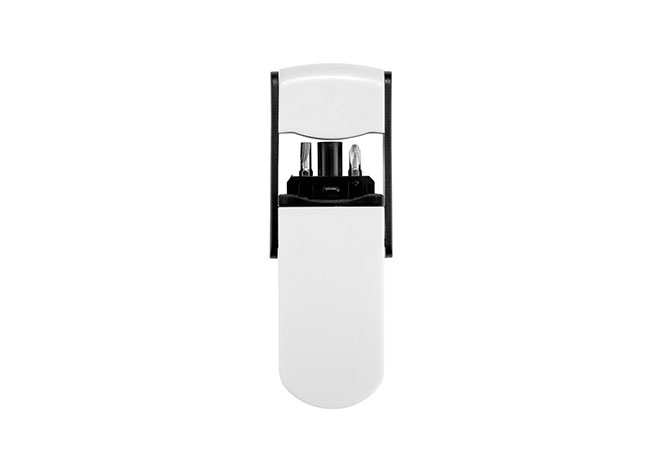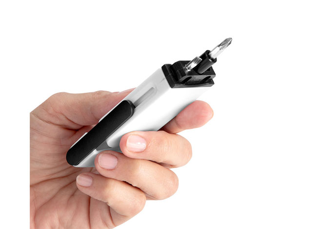 Set de destornillador con 2 puntas intercambiables ocultas (plana de 3,5 mm y phillips de 2mm.) Ambas en CR-V que las hace más durables y resistentes a la corrosión. Incluye cinta métrica de 1 m. con escalas en centímetros, pulgadas y pies. Cuerpo imantado para poder fijar las puntas. Apertura por deslizamiento.