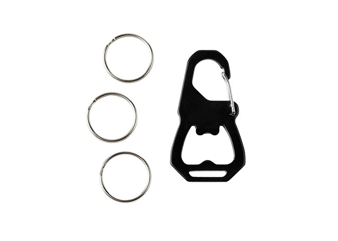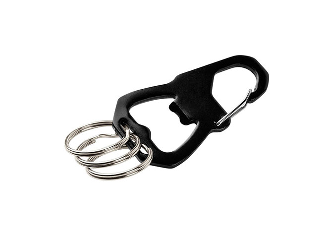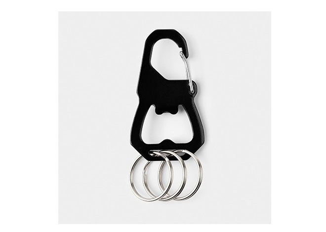 Descripción: Llavero metálico multifunción con gancho, destapador y tres aros para llaves. Organiza y transporta tus llaves con un accesorio practico y de uso diario.