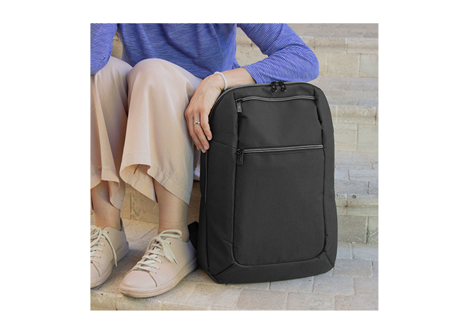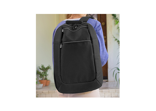 Morral portanotebook de 14 pulgadas, con 2 compartimentos principales y 2 bolsillos frontales horizontales. Con asa superior y correas acolchonadas y cierres metálicos, hebillas plásticas. Espalda acolchonada. Tira para sujetar el equipaje. Capacidad 14 litros.
