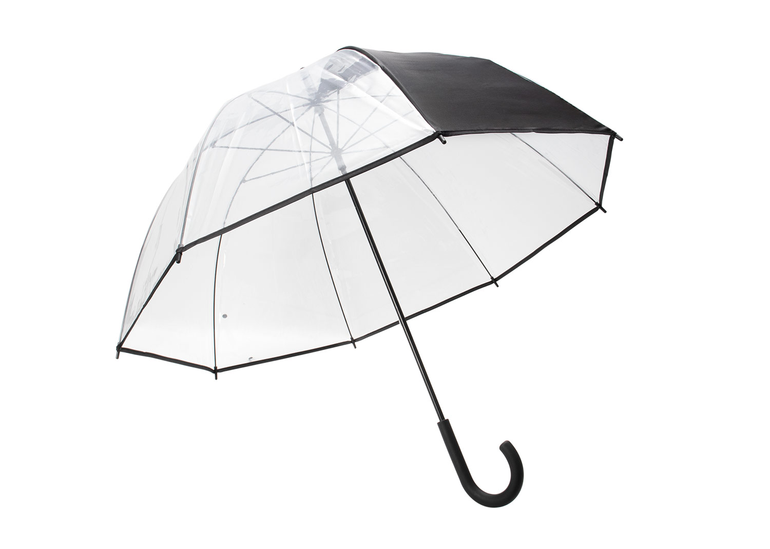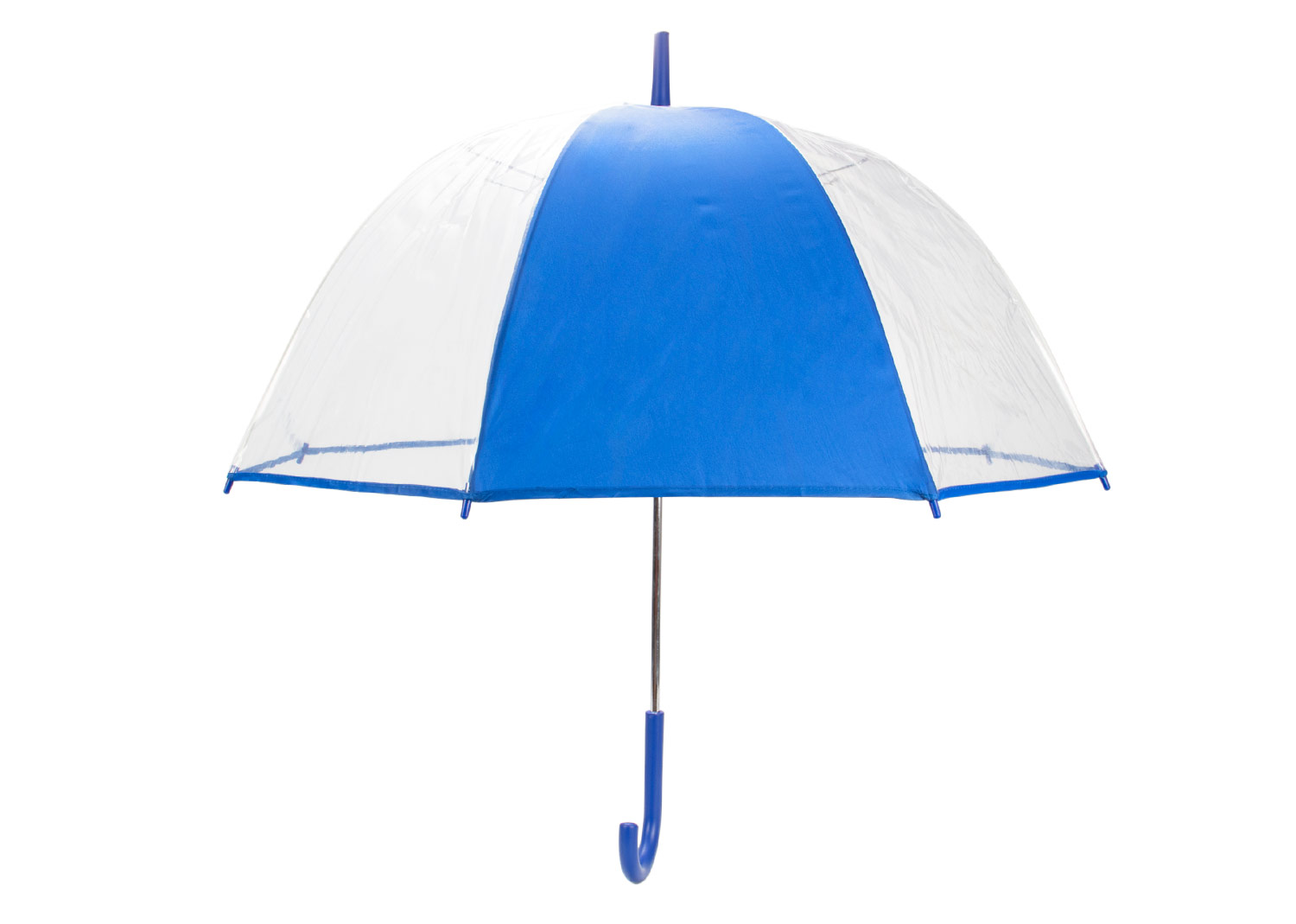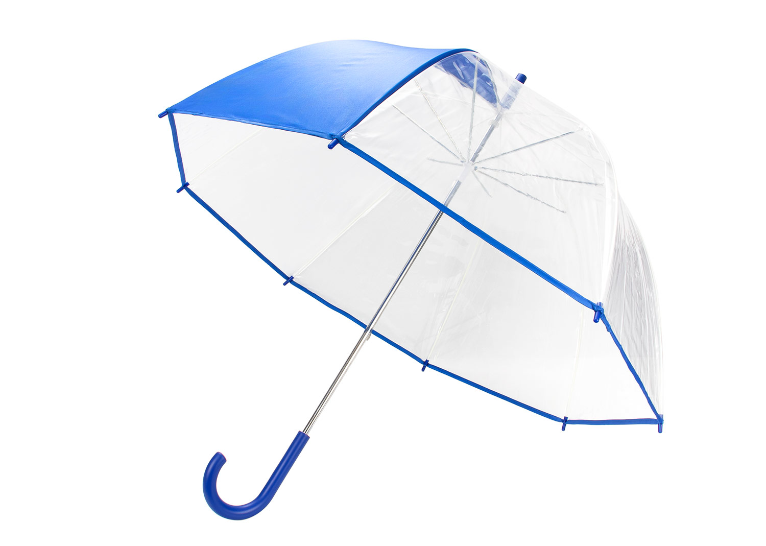 Paraguas de 23″ con 8 cascos, diseño tipo Apolo de cúpula amplia que ofrece mayor cobertura. Apertura manual completa, estructura reforzada con marco de metal Zicify y varillas largas de fibra de vidrio para mayor resistencia al viento. Eje de metal cromado que aporta durabilidad y estilo. Cubierta en POE 10C transparente con un panel de tela pongee en color sólido, creando un contraste elegante. Mango de plástico con acabado de goma, ergonómico y en color a juego con la tela pongee, ideal para un agarre cómodo y seguro.