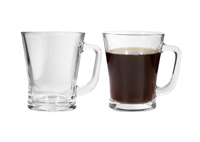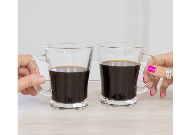 Set de 2 tazas de vidrio con asa, ideal para tomar bebidas calientes.