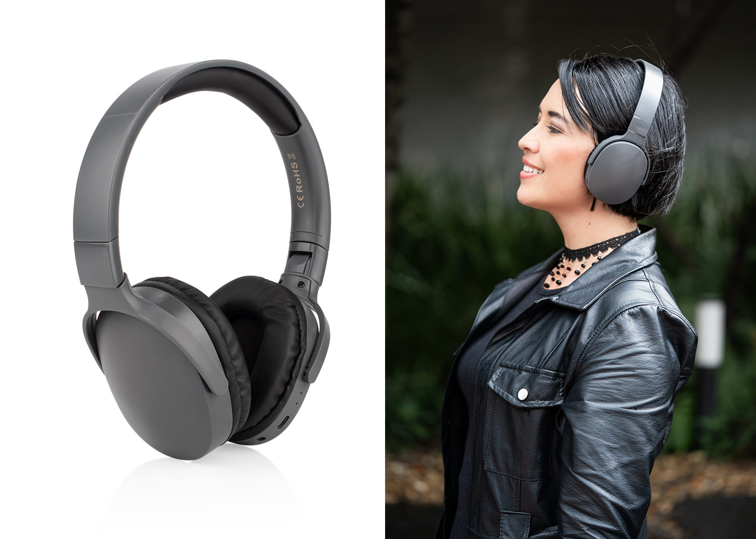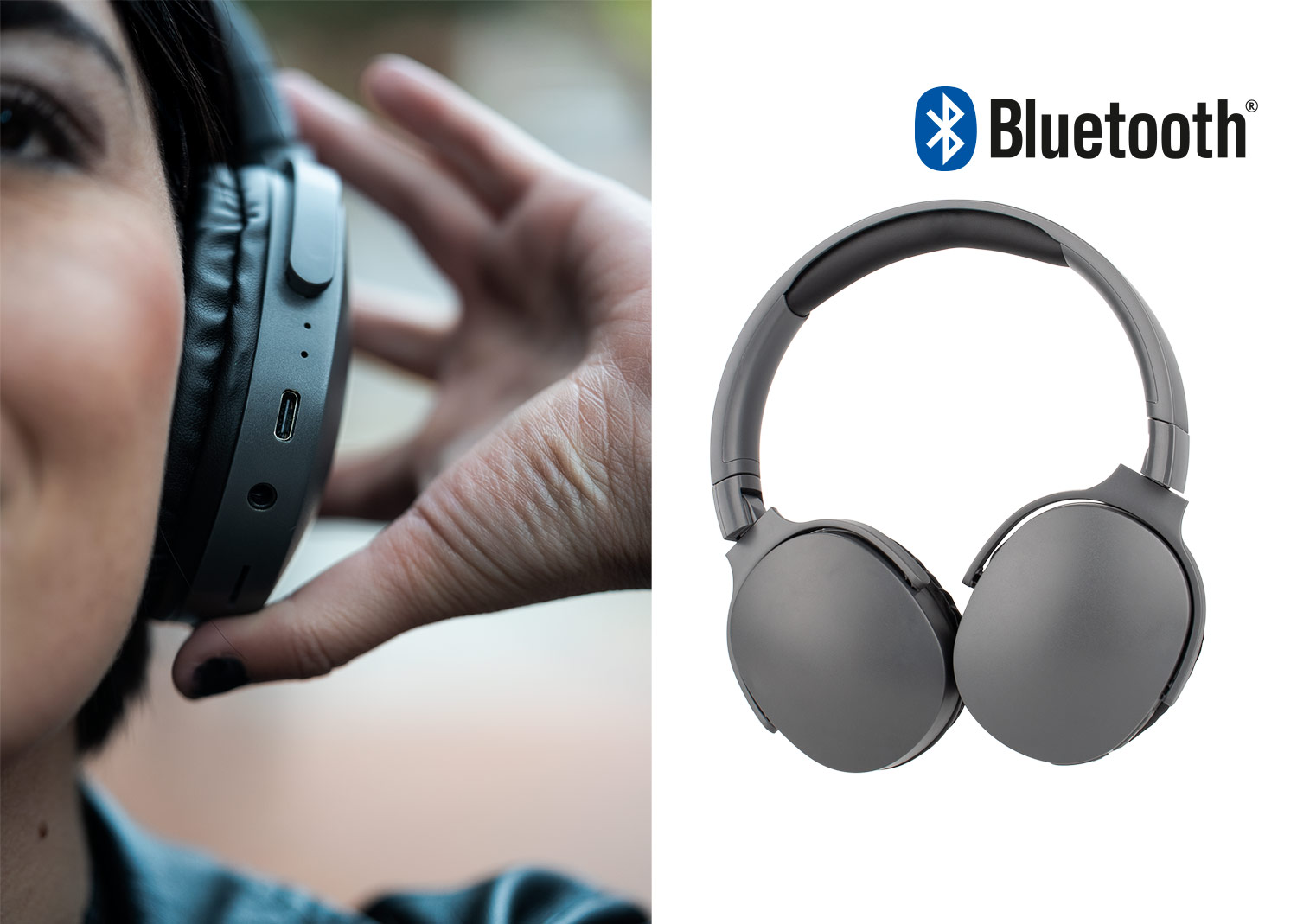 Audífonos Bluetooth 5.3, conector AUX para cable 3.5 mm, compatible con tarjeta TF y radio FM. Tiempo de uso aproximadamente 8 horas, puerto de carga Tipo C. Distancia de trabajo hasta 10 metros. Cuenta con botones para aumentar y disminuir volumen. Los audifonos pueden cerrarse.