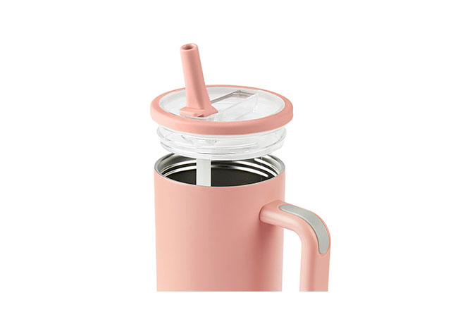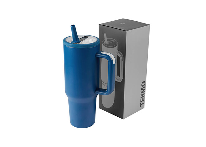Descripción: Termo doble pared. Cerrado al vacío. Pared interna y externa de acero inoxidable. Tapa de plástico con cierre de rosca que incluye boquilla con popote. Capacidad de 40 Oz. Base de 7.6 cm de diámetro. Incluye caja individual.