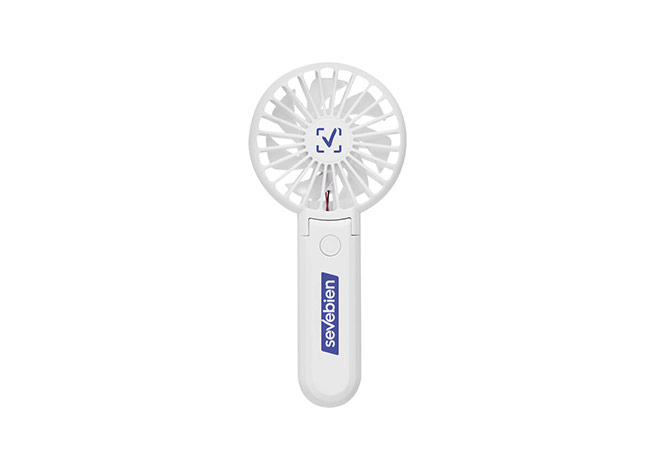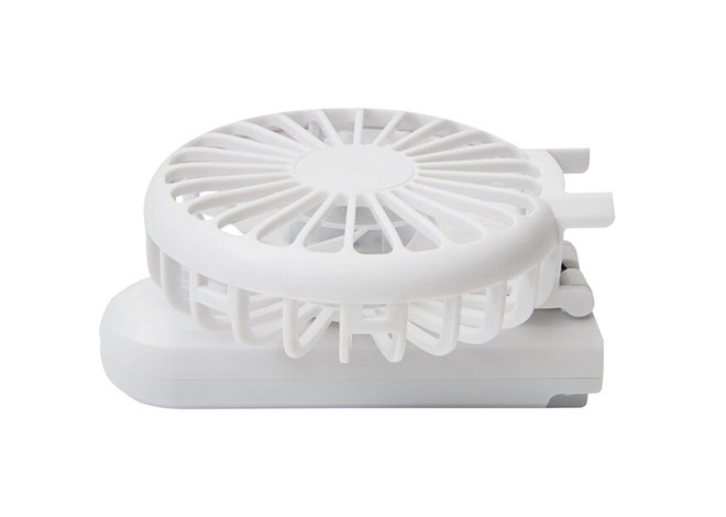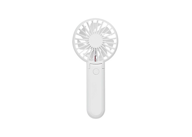 Mini ventilador portátil. Plegable a 180° con doble función, de mano y de escritorio. Diseño compacto, tamaño de bolsillo, ligero y fácil de transportar. 3 velocidades (niveles de flujo de aire: bajo, medio y alto). Silencioso. Batería recargable via USB. Cable de carga USB C color blanco.